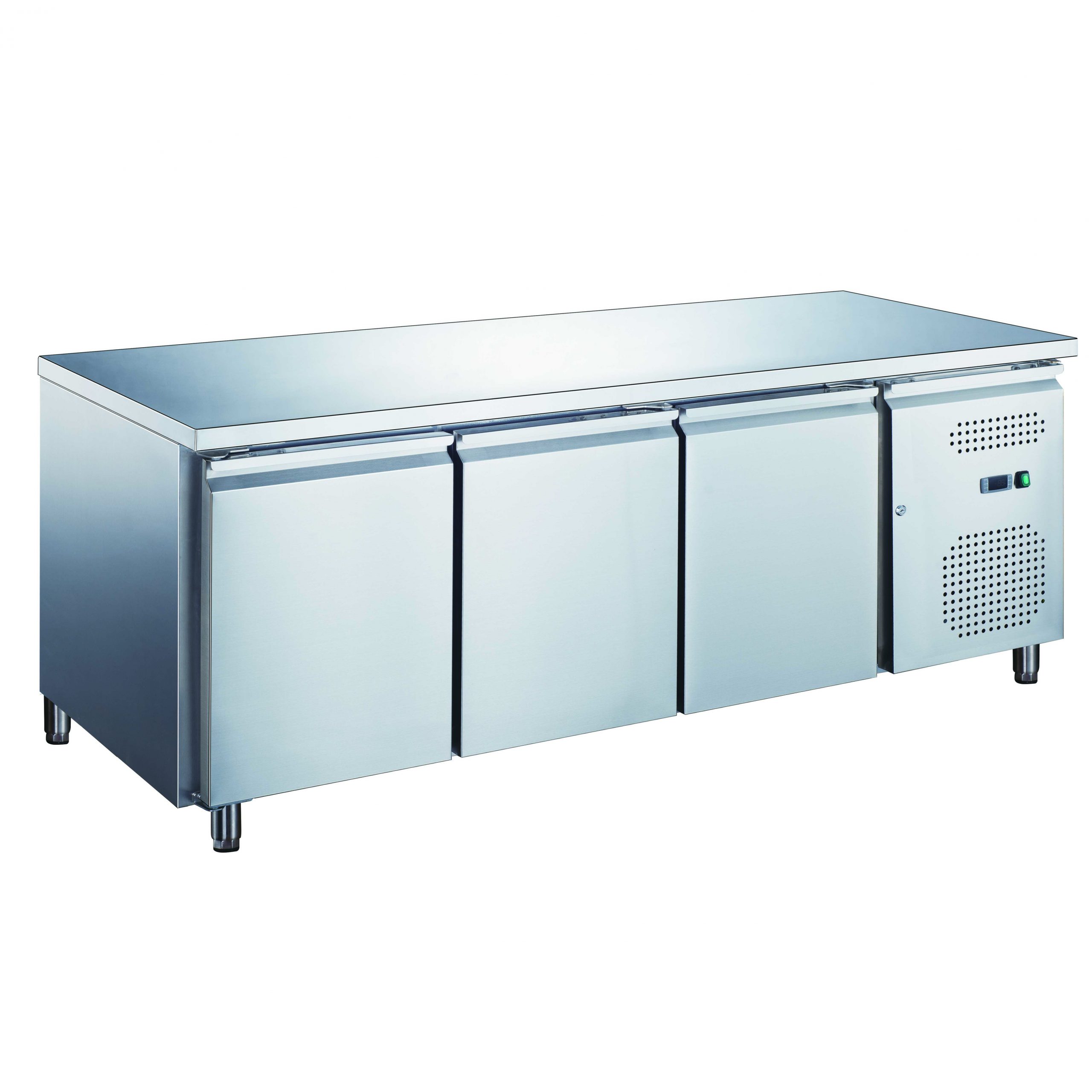 ŠALDOMAS STALAS HURAKAN HKN-GN3TN naudojamas kaip darbinis paviršius ingredientams apdoroti, taip pat maistui ir gėrimams vėsinti ir laikyti. • temperatūrų diapazonas -2…+8 °C • dinaminis aušinimas • šaltnešis: R290 • nerūdijančio plieno stalviršis be atbulinės eigos • 3 durys • šoninis šaldymo blokas • talpa: 417 l • ant ratų